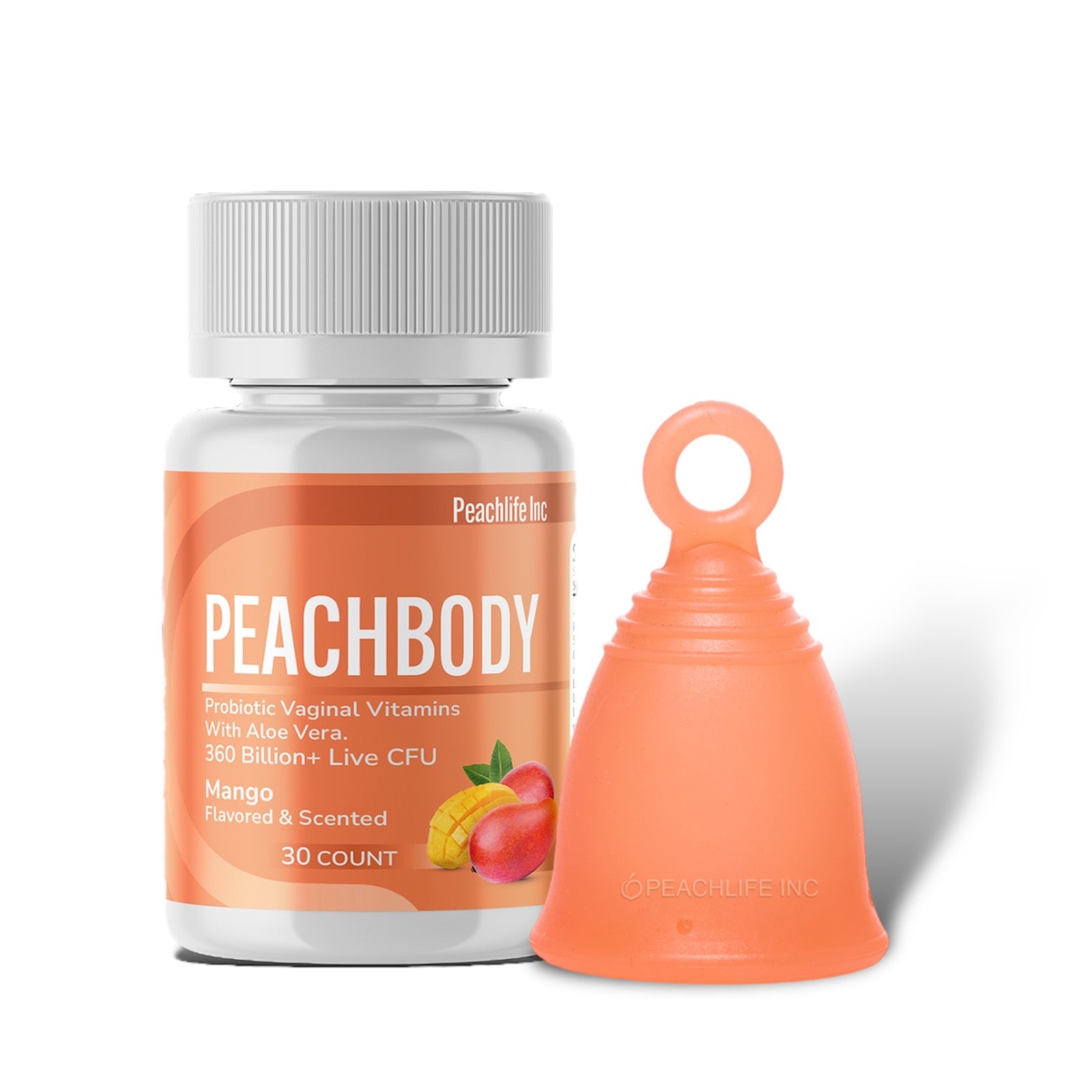 Peachcup Ring Menstrual Cup & Peachbody Mango Flavored Probiotic Suppositories Bundle